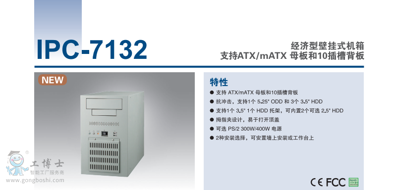 經濟型壁掛式機箱,支持ATX/mATX 母板和10插槽背板New