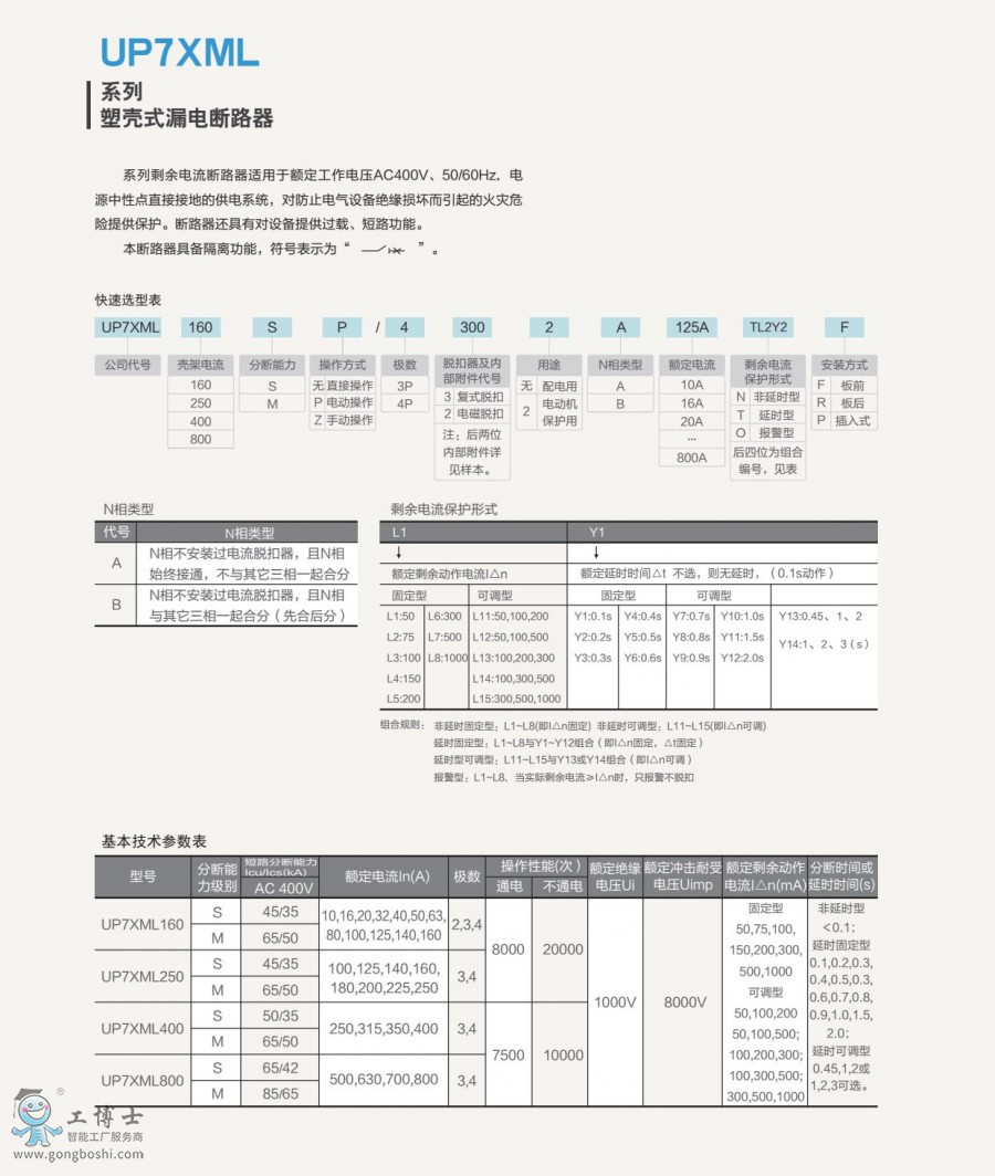 UP7XML系列UP7XML250塑殼式漏電斷路器