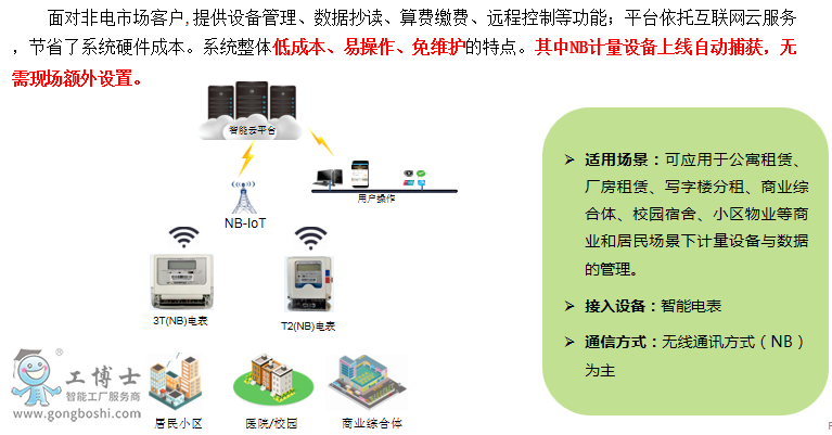 低成本,易操作,免維護,其中NB計量設(shè)備上線自動獲取,無需現(xiàn)場額外設(shè)置。內(nèi)置NB模塊(含九年流量費),無線傳輸,無線布局,滿足集抄/費控中低端需求,內(nèi)置通訊模塊為公司接口,可接客NB通訊模塊,可技術(shù)合作對接客戶系統(tǒng)。