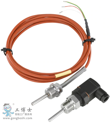 利用一個不銹鋼管式 1xPt100 電阻溫度計進行溫度測量;測量插件根據 DIN IEC751 焊接固定,不可更換。