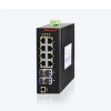 8個10/100/1000M電口,Layer3 工業以太網交換機,輸入電壓DC12V/24V,可選AC/DC85~265V,卡軌式安裝