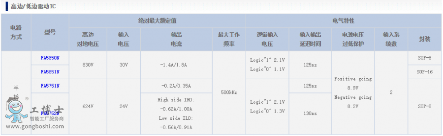 富士電源控制IC 高邊/低邊驅動IC FA5650N