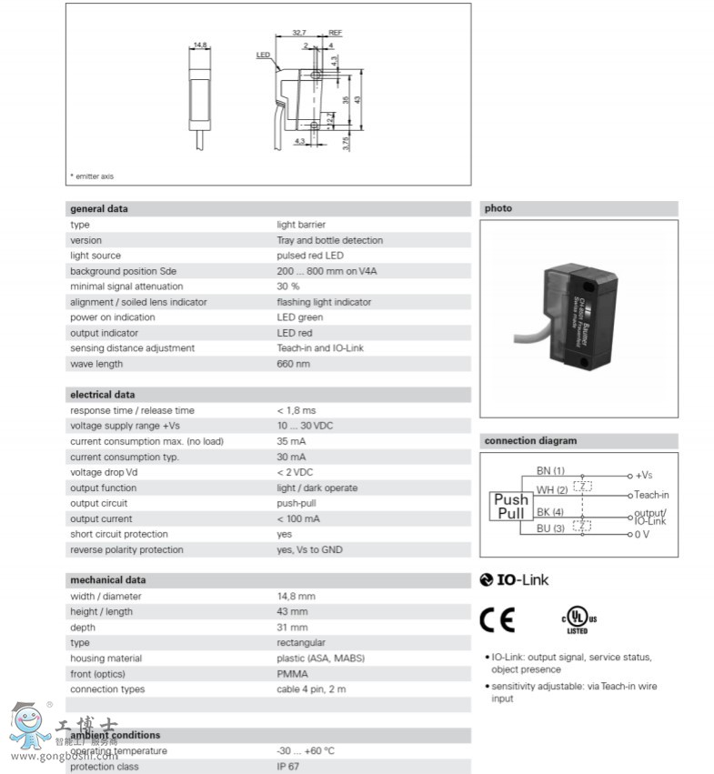 檢測距離(光電/超聲波) (mm) 200 ~ 800