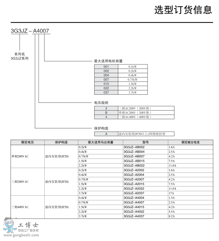 歐姆龍變頻器 3G3JZ-A4004 三相400V AC 盤內(nèi)安裝型0.4KW