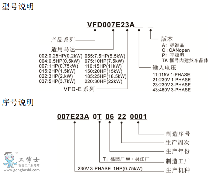 VFD075E43A臺達變頻器VFD-E系列功率7.5KW電壓380V
