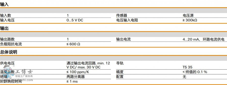 版本 信號(hào)變送器/隔離器, 輸出回路饋電, 輸入 : 0-5 V, 輸出 : 4-20 mA, (回路供電)