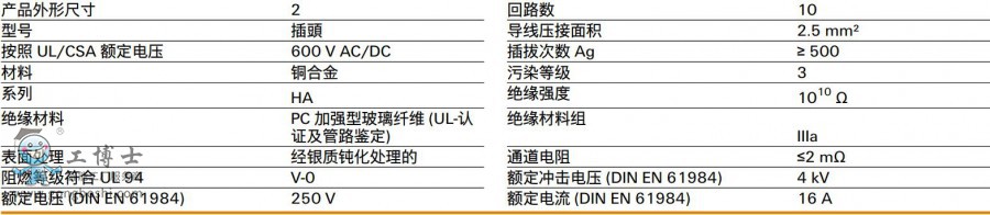 版本 HDC - 插芯, 插頭, 250 V, 16 A, 回路數: 10, 螺釘聯接, 產品外形尺寸: 2