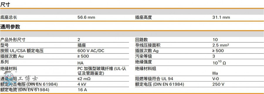 版本 HDC - 插芯, 插座, 250 V, 16 A, 回路數(shù): 10, 冷壓聯(lián)接, 產(chǎn)品外形尺寸: 2