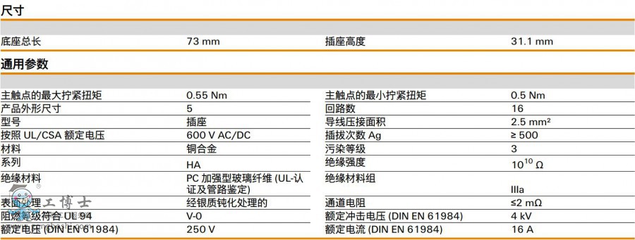 版本 HDC - 插芯, 插座, 250 V, 16 A, 回路數: 16, 螺釘聯接, 產品外形尺寸: 5