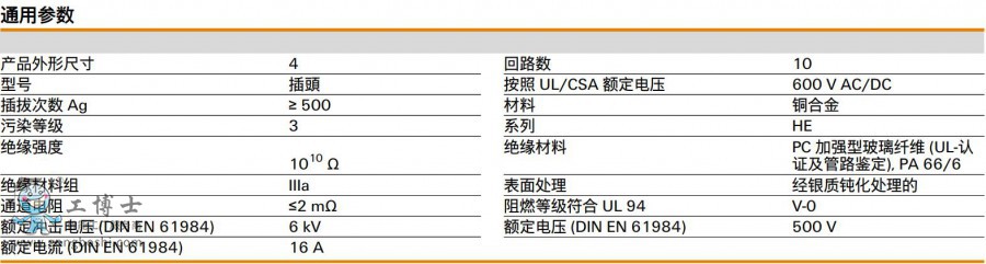 版本 HDC - 插芯, 插頭, 500 V, 16 A, 回路數: 10, SNAPIN, 產品外形尺寸: 4