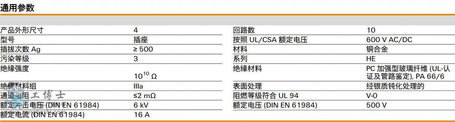 版本 HDC - 插芯, 插座, 500 V, 16 A, 回路數: 10, SNAPIN, 產品外形尺寸: 4