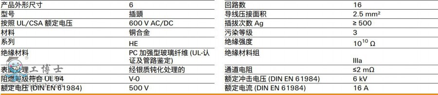 版本 HDC - 插芯, 插頭, 500 V, 16 A, 回路數: 16, 螺釘聯接, 產品外形尺寸: 6