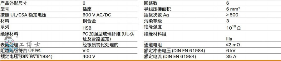 版本 HDC - 插芯, 插座, 400 V, 35 A, 回路數: 6, 螺釘聯接,產品外形尺寸: 6