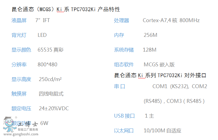 ),四線電阻式觸摸屏(分辨率4096×4096)。同時還預裝了MCGS嵌入式組態軟件(運行版),具備強大的圖像顯示和數據處理功能。