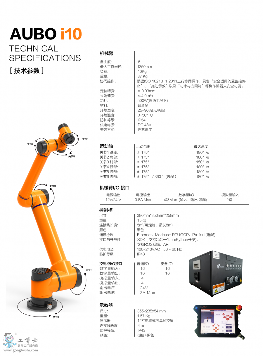 AUBO-i10具備工作空間大、運動速度快和負荷能力強等特點,可應用于汽車制造焊接工作,如點焊、凸焊、縫焊、及電弧焊等焊接工藝,焊接質量遠優于人工焊接,且使生產更