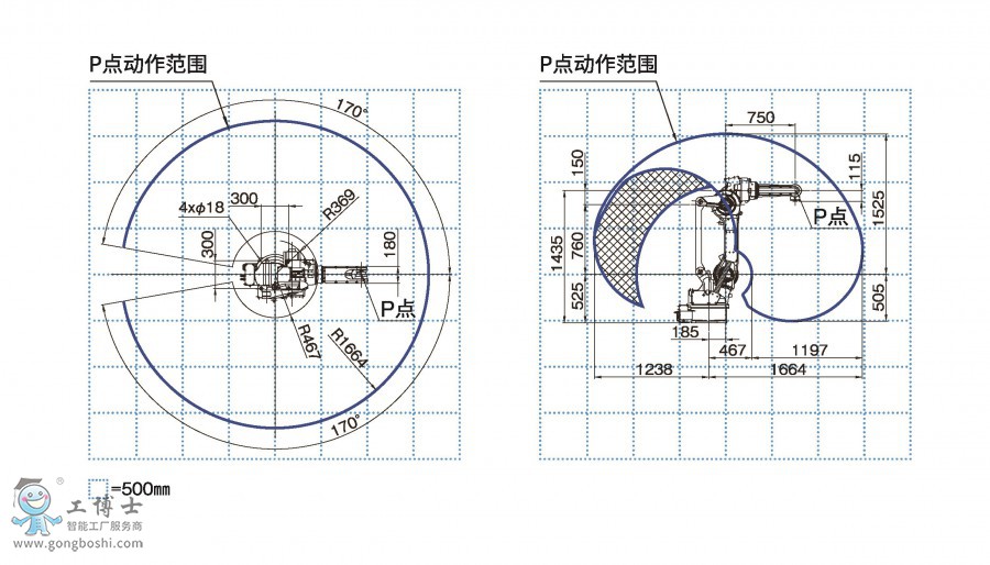 注)1、機器人正裝用于焊接時,第3軸的動作范圍將受限制