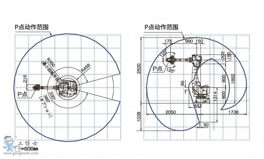 注)1、根據手腕軸的搭載重量不同,可搭載的重量也會有不同