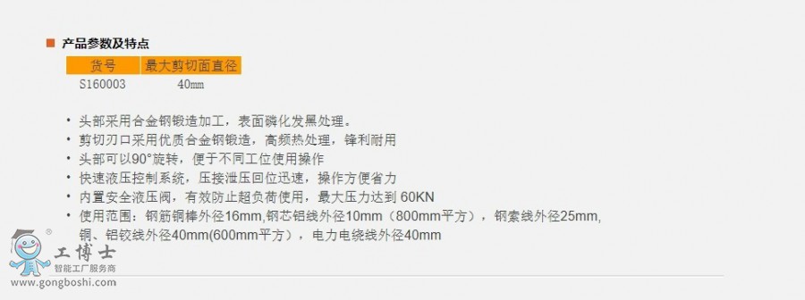 鋼盾工具液壓斷線鉗 貨號:S160003