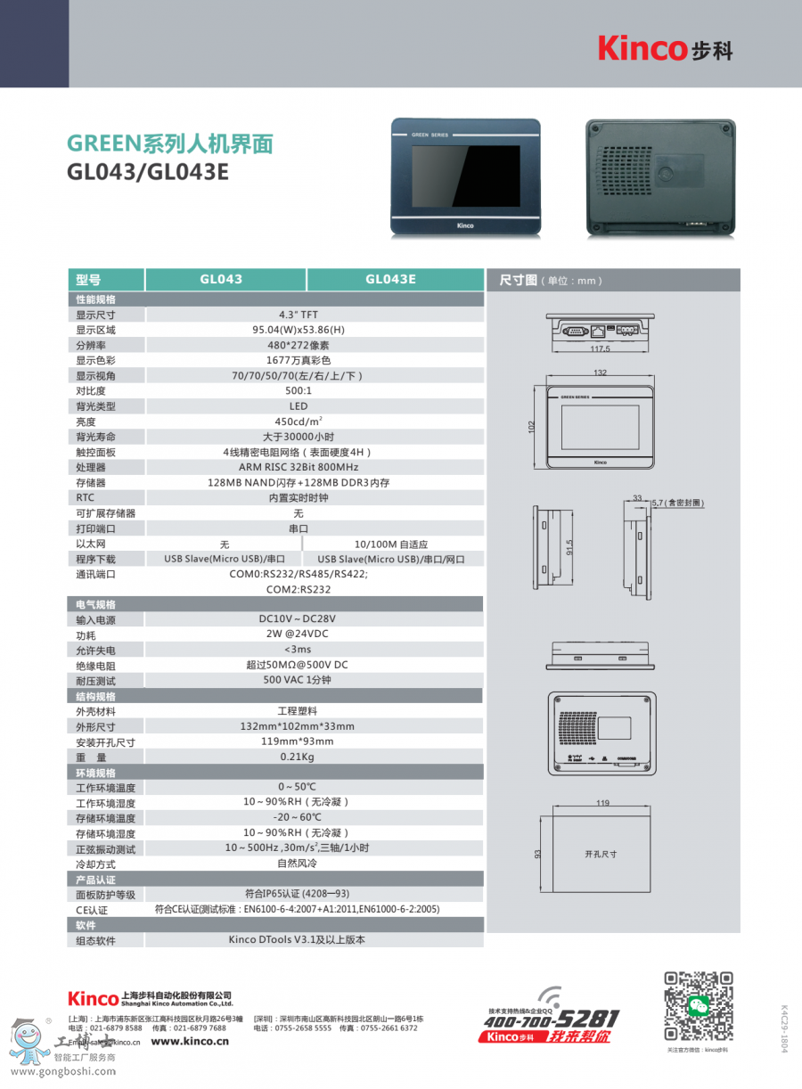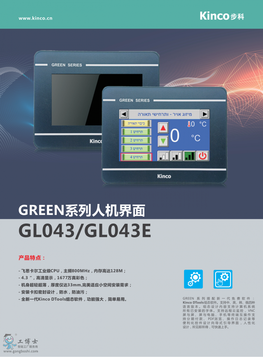 Kinco步科觸摸屏GREEN系列GL043|支持編程調試|售后維修