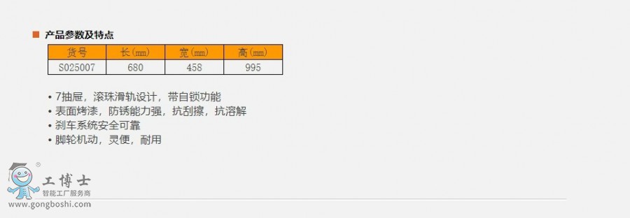 鋼盾7抽屜工具車 貨號:S025007