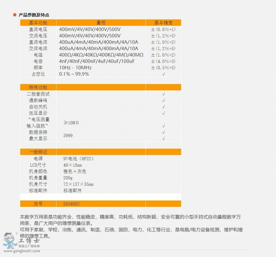 鋼盾自動量程數(shù)字萬用表 貨號:S034002