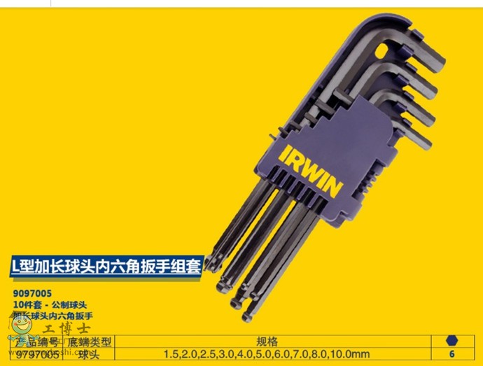 美國irwin歐文公制加長L內六角扳手套裝組套9097001 9097005
