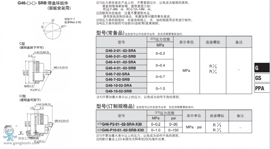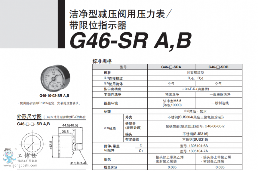 SMC壓力表 潔凈型減壓閥用壓力表 帶限位指示器 G46-2-01-02-SRA