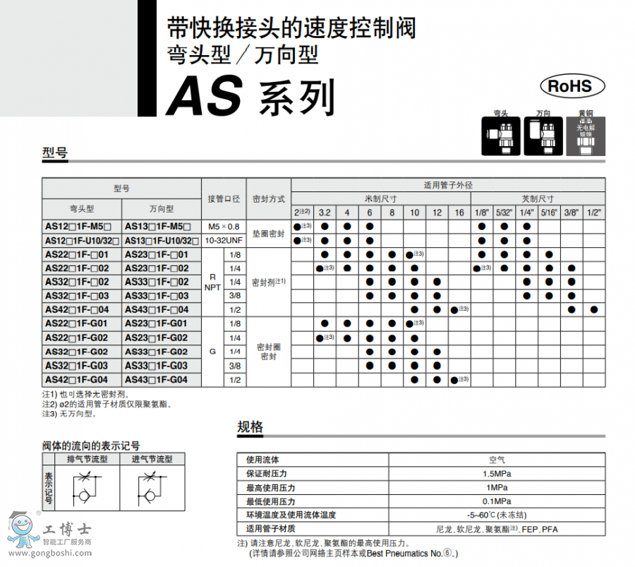 SMC速度控制閥 帶快換接頭 彎頭型 AS系列 AS2211F-G01-10SA