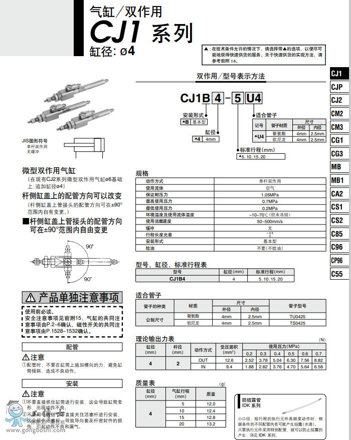 SMC氣缸 雙作用 CJ1B4-5U4