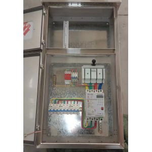 二、典型戶用單相配電箱設計 選擇箱體,與塑料箱體相比,金屬箱體較好。在金屬箱體中,不銹鋼的***好。金屬箱體中,性價比比較高的是鍍鋅板噴塑箱體,噴塑有二次防腐的功能。無論您的光伏配電箱是安裝在戶外還是安裝在室內(nèi),都需要注意箱體的防塵防水規(guī)格。戶外要用IP65等級,戶內(nèi)要用IP21等級,如果是在海邊或者鹽霧環(huán)境比較惡劣的地區(qū),在選擇光伏配電箱時,請務必選擇鍍鋅板噴塑、敷鋁鋅板噴塑、304不銹鋼或者更高規(guī)格的箱體,目的是防腐蝕。 常用戶用單相配電箱電氣設計 1、3kw單相配電箱 2、5kw單相配電箱 3、6kw單相配電箱 4、8kw單相配電箱 5、10kw單相配電箱 每個省對并網(wǎng)要求不同,有些地方對配電箱有些特殊要求,比如配電箱是否要安裝電表?電網(wǎng)接入方案中是否要求配電箱安裝防孤島裝置。我們在選擇購買光伏配電箱的時候,首先要和供電局確認要求。