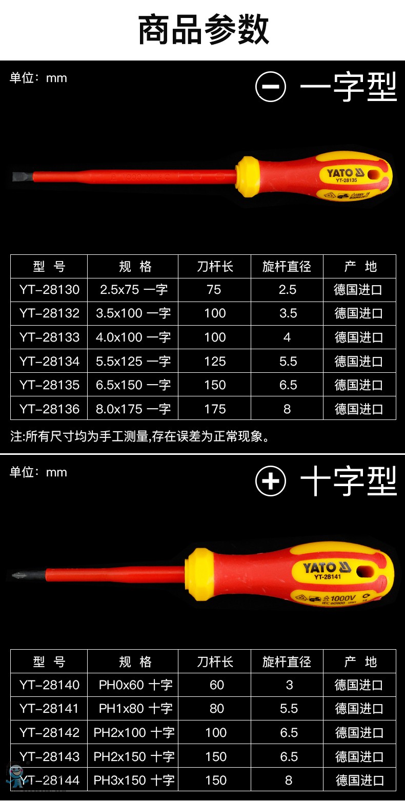 YATO易爾拓工具進口絕緣磁性原裝一字十字米字螺絲批螺絲刀YT-28130 YT-28140