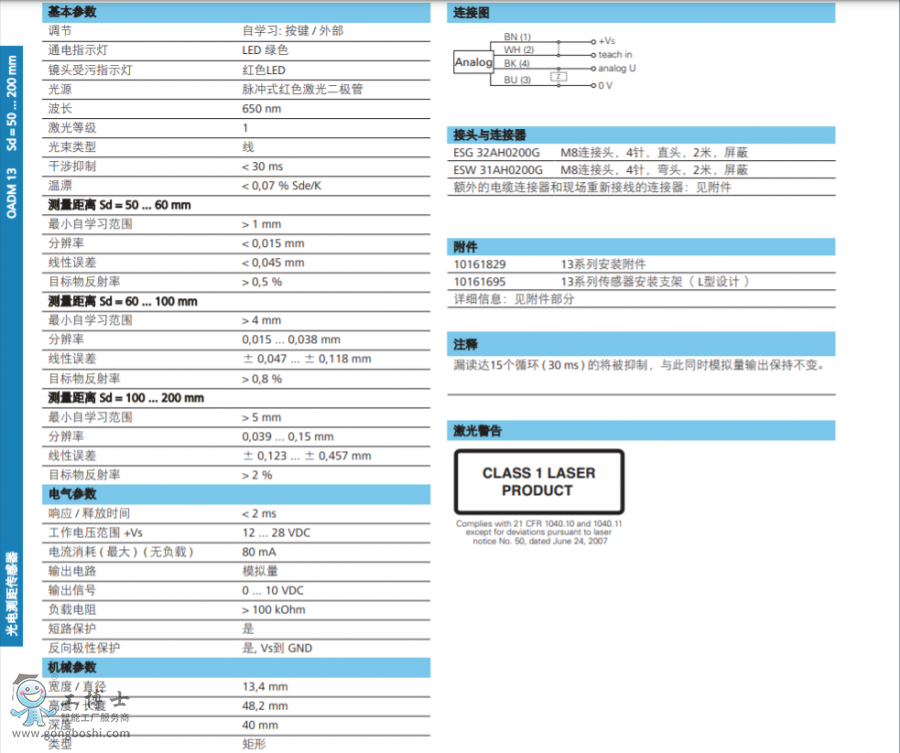 Baumer 堡盟OADM 13I7760/S35A激光測距傳感器位移傳感器可開增票