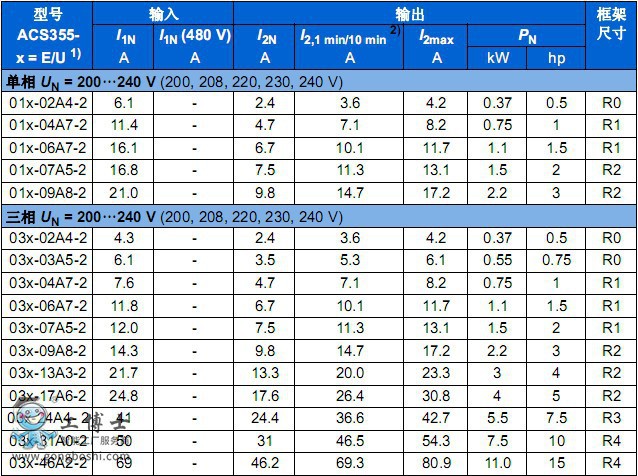 ABB變頻器ACS355系列ACS355-03E-07A3-4產品參數
