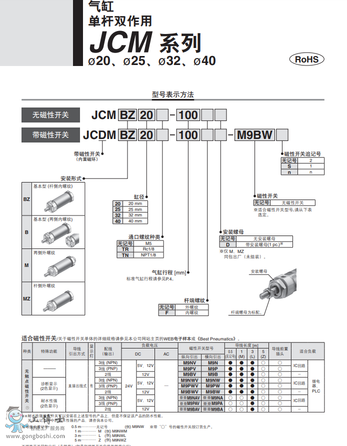 SMC 氣缸 JCMBZ32TR-100FD