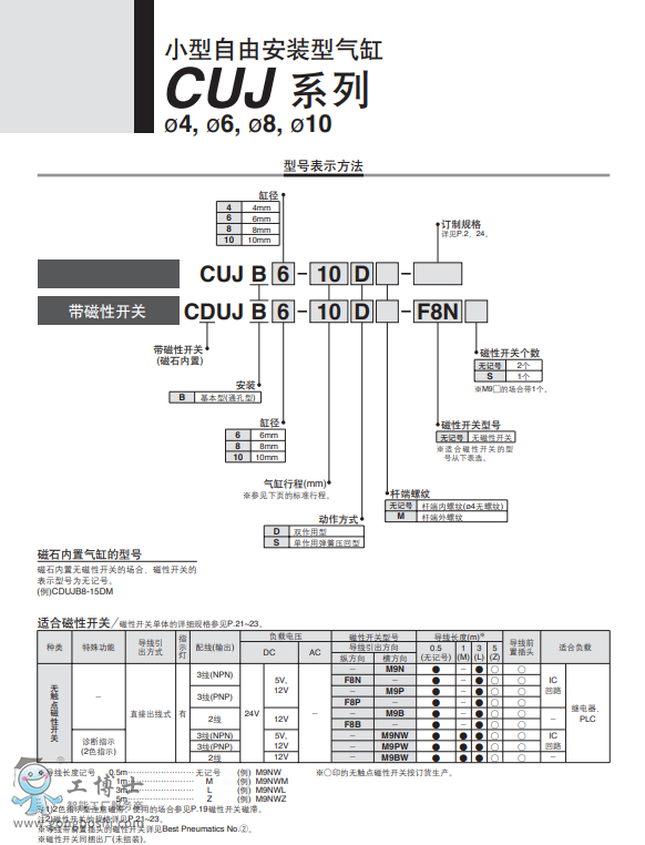 SMC 小型自由安裝型氣缸 CUJB4-10DM-XB6
