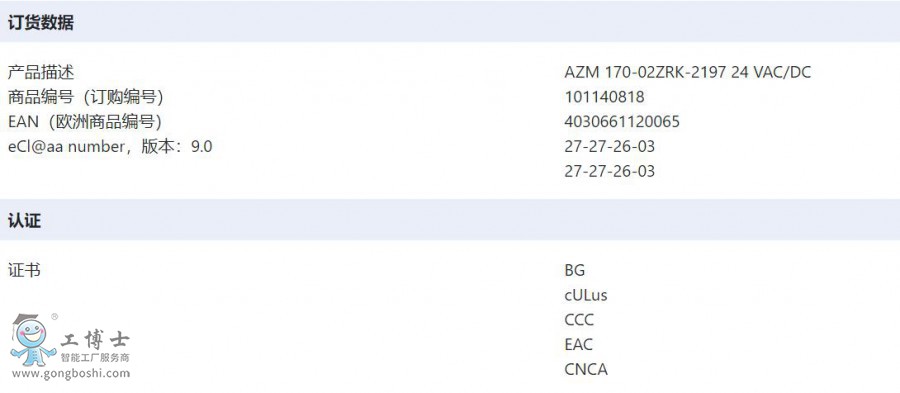 型號: AZM 170-02ZRK-2197 24 VAC/DC