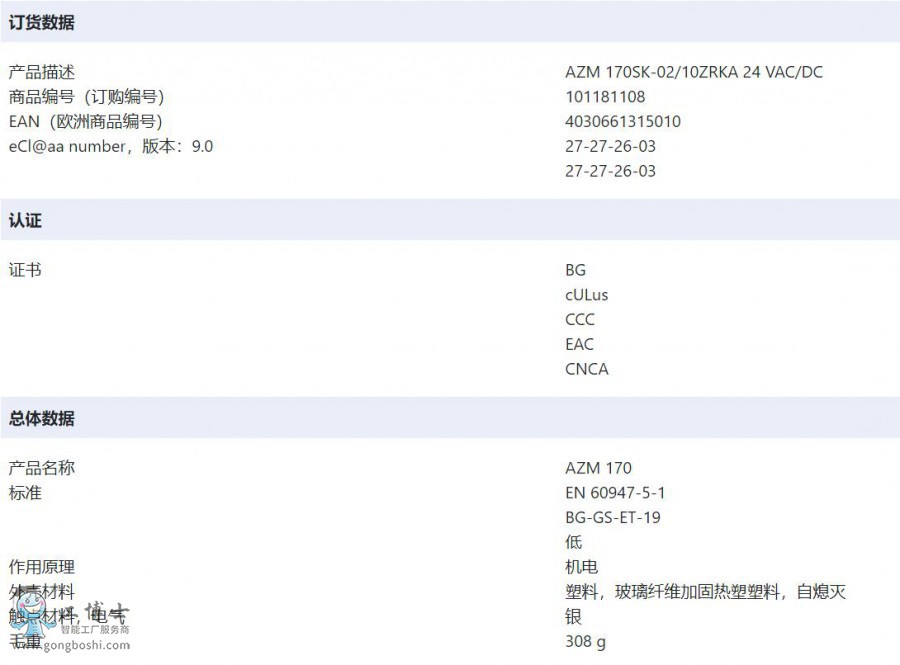 型號: AZM 170SK-02/10ZRKA 24 VAC/DC