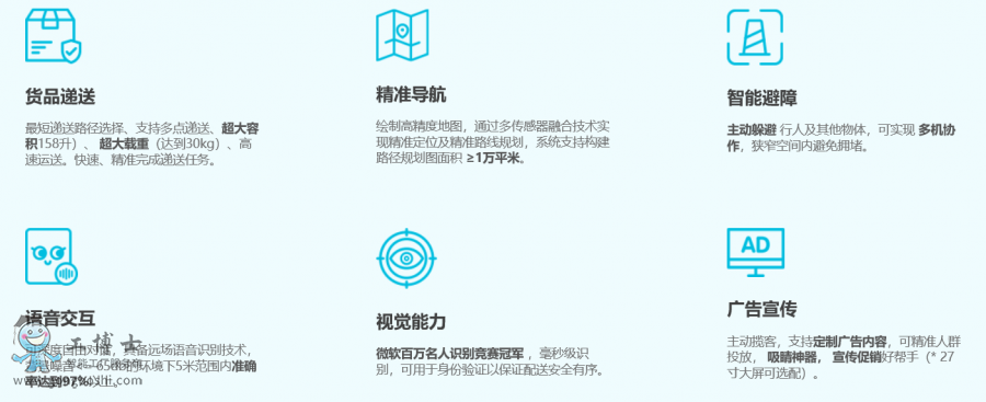 可實(shí)現(xiàn)貨品遞送及過(guò)程中的自主路徑規(guī)劃、智能避障、身份識(shí)別、語(yǔ)音播報(bào)、閑時(shí)自動(dòng)充電等功能。搭載獵戶星空Robot OS,可根據(jù)需求進(jìn)行個(gè)性化場(chǎng)景定制,無(wú)成本對(duì)接客戶系統(tǒng),在娛樂(lè)場(chǎng)所、辦公樓、醫(yī)療機(jī)構(gòu)、餐飲、酒店等多個(gè)場(chǎng)景實(shí)現(xiàn)快速落地,幫助商家降本增效的同時(shí),提高社交媒體熱度,提升企業(yè)形象。