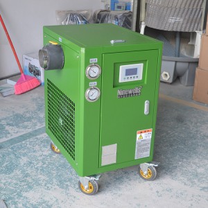 機(jī)組一體機(jī)設(shè)計(jì),在帳篷預(yù)留的風(fēng)口處,將風(fēng)管與機(jī)組連接,出風(fēng)及回風(fēng),帳篷內(nèi)的空氣經(jīng)過(guò)移動(dòng)式帳篷除濕降溫機(jī)組的蒸發(fā)器,在蒸發(fā)器進(jìn)與低溫的制冷劑間接式熱交換,空氣與蒸器交換時(shí)得到冷量同時(shí)除濕,空氣的溫度降低,低溫的干燥的空氣再經(jīng)過(guò)風(fēng)機(jī)的作用下,將制冷除濕后的低溫干燥冷我送入帳篷內(nèi),如此循環(huán)。
