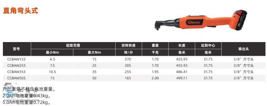 Cleco庫柏無線電動裝配工具直角彎頭式CCBAW153/CCBAW253/CCBAW353/CCBAW503