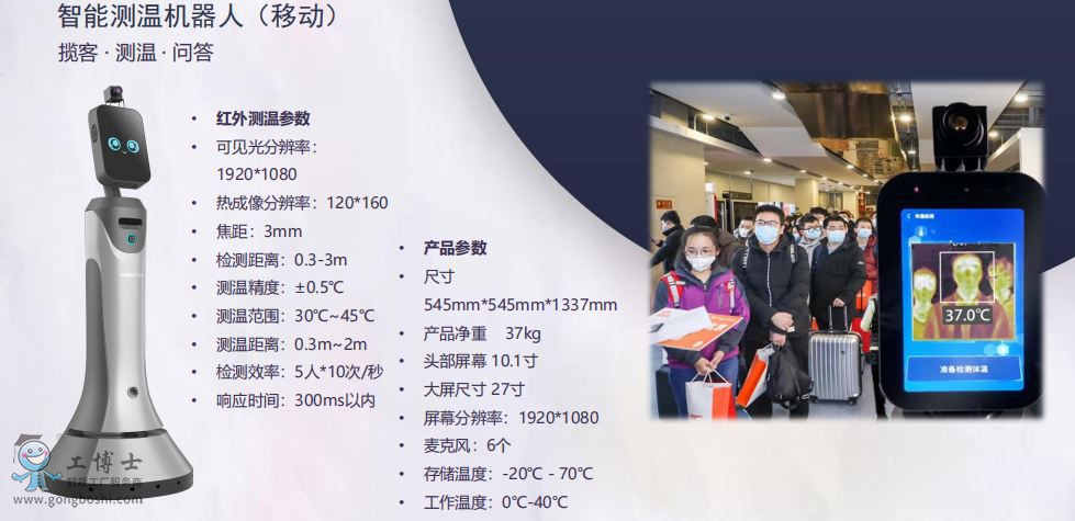 簡介:獵戶星空/OrionStar智能測溫機器人能夠適應人體健康檢查的各種應用環境,能夠**針對人體溫度分布區間進行高精度溫度識別,特別適用于人流密集場景下群體和個體的體溫篩查。