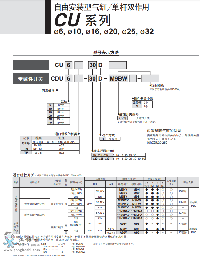 SMC 自由安裝型氣缸 CU系列 CU20TN-5D-XB6