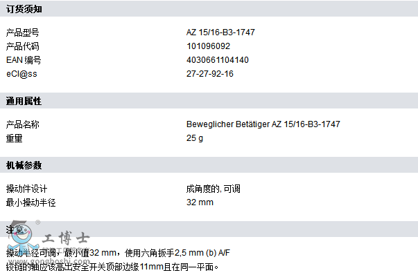 AZ 15/16-B3-1747安全門開關操動件德國施邁賽SCHMERSAL