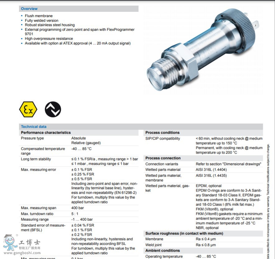 可選配通過ATEX認證的版本(4 … 20 mA輸出信號)