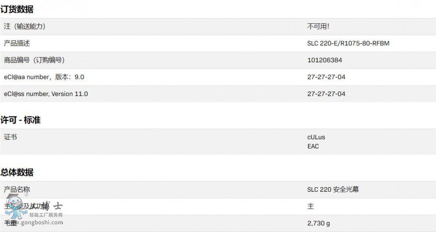 SLC 220-E/R1075-80-RFBM施邁賽SCHMERSAL安全光幕SLC220系列