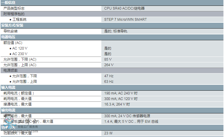 SIMATIC S7-200 SMART,CPU SR40, 上,AC/DC/繼電器, 機(jī)載 I/O: 24 個 24V DC 數(shù)字輸入;16 個 2A 繼電器數(shù)字輸出; 電源:交流 47-63Hz 時 85-264V AC, 程序存儲器/數(shù)據(jù)存儲器 40 KB