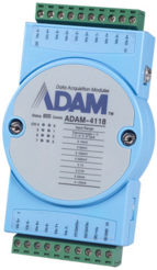 ADAM-4118是16位A/D、8通道的熱電偶輸入模塊,可以采集電壓、電流熱電偶等模擬量輸入信號,它支持多種熱電偶類型(Type J, K, T, E, R, S, B),并且將測量到的溫度以工程量單位(℃)輸出給上位機。為了適應各種應用場合,ADAM-4118的每個通道可以配置成不同的熱電偶輸入類型。 ADAM-4118支持8路差分信號,還支持MODBUS協議。在模塊的右側有一個白色的撥碼開關來設置初始化狀態(INIT*)和正常工作狀態的切換。除了熱電偶量程外,ADAM-4118還具有4-20ma、±20ma等電流量程,當需要測量電流時,不需要外接電阻,只需打開盒蓋,按照電路板上的標識來設置跳線即可。
