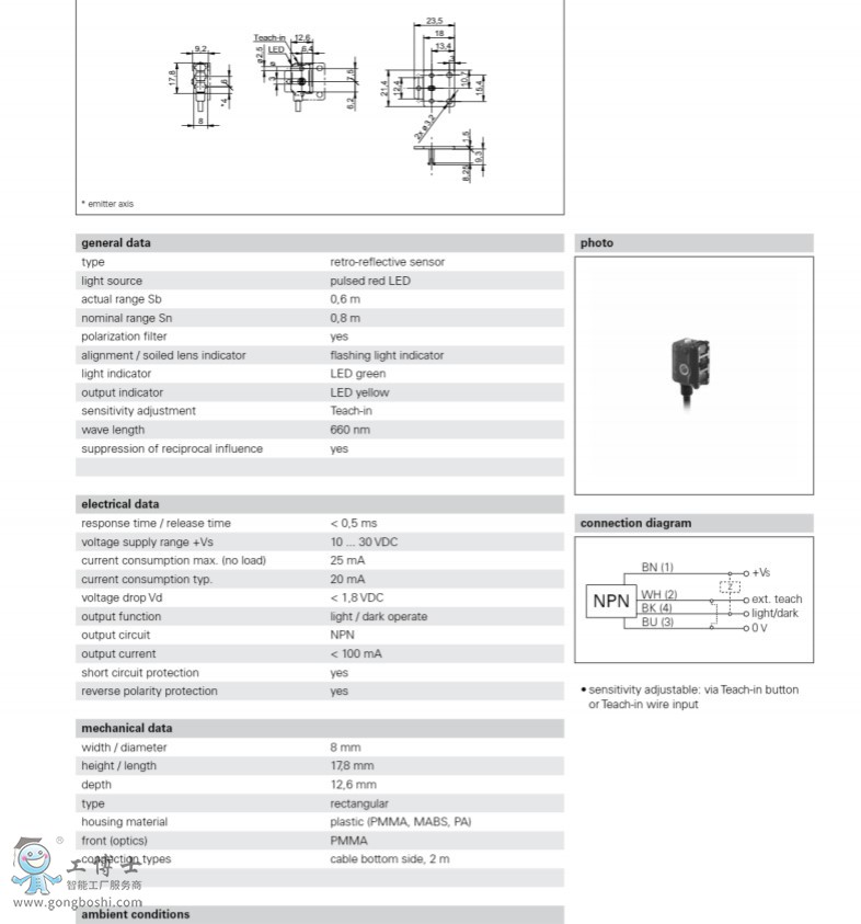 Baumer堡盟鏡反射式光電傳感器FPDK 07P6901開增值票開關傳感器