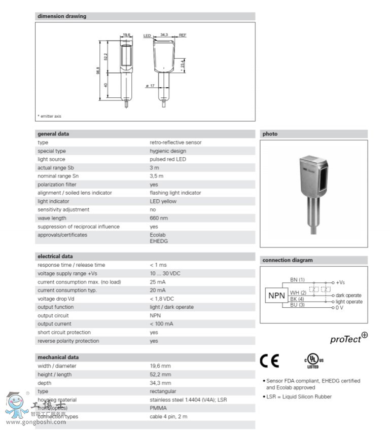 Baumer 堡盟FPDH 14P5101鏡反射式光電傳感器開關可開增票