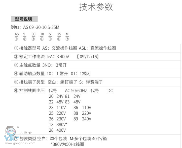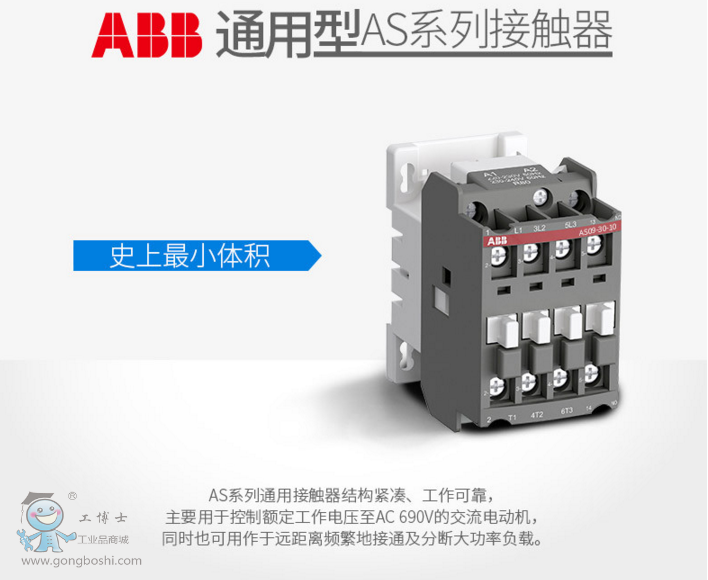 ABB AS低壓交流接觸器9A 220VAC 可配機械聯鎖